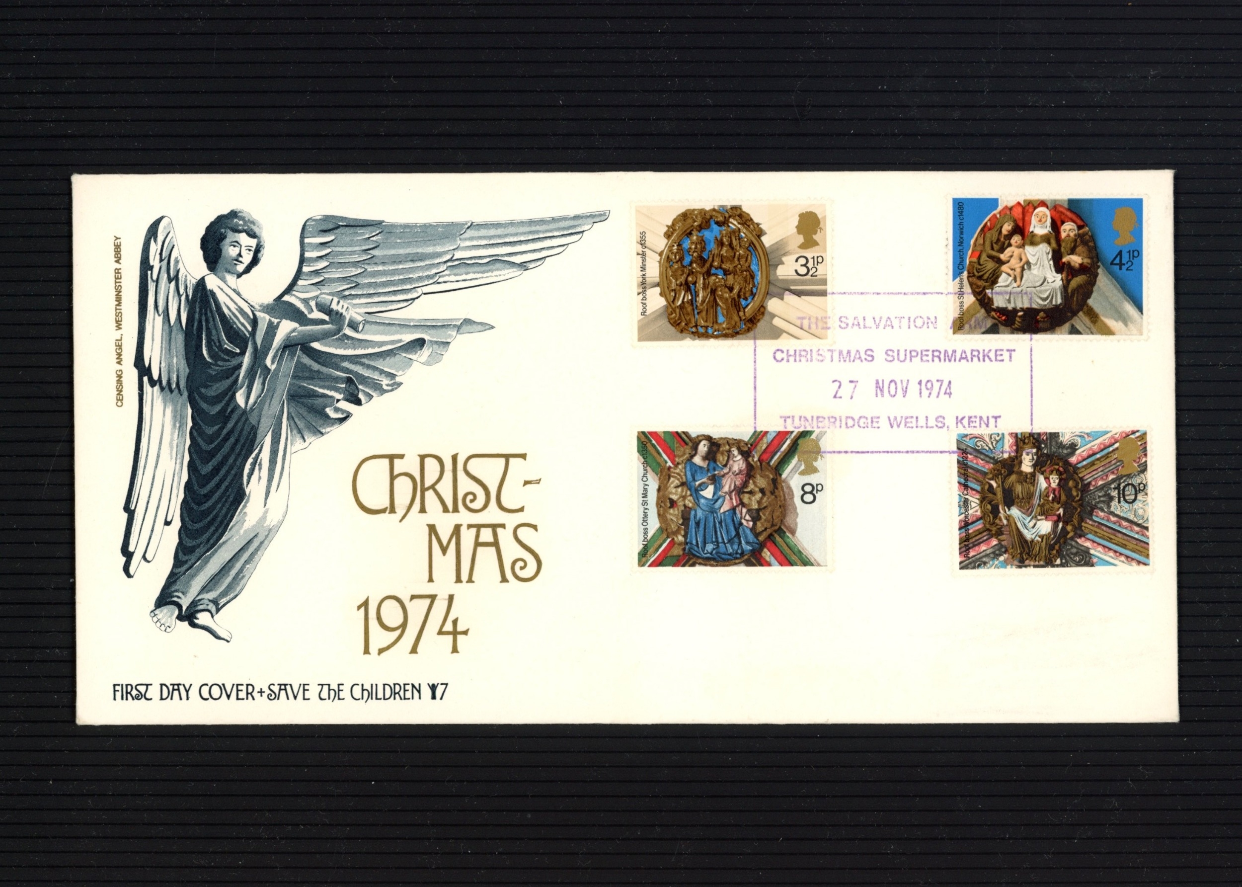 Save the Children FDC with The Salvation Army Christmas Supermarket Tunbridge Wells special H/S. Very scarce. UA (see photo)
