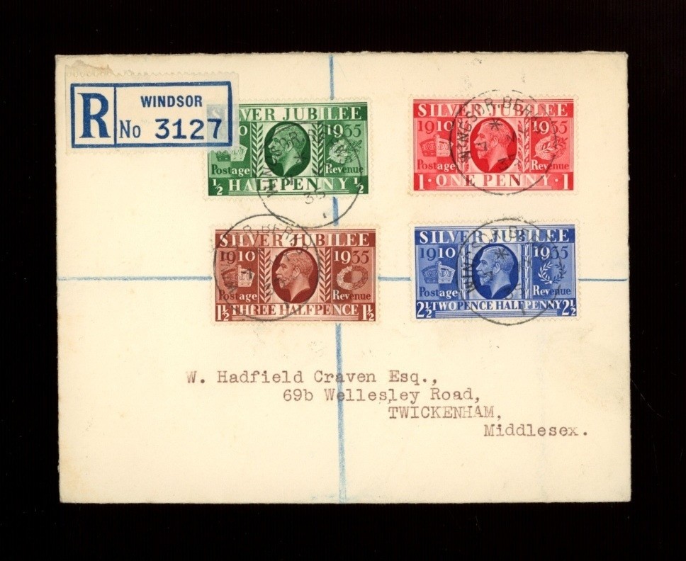 Plain FDC with Windsor registered single ring CDS. Neatly slit open at top. Cat £400. AT