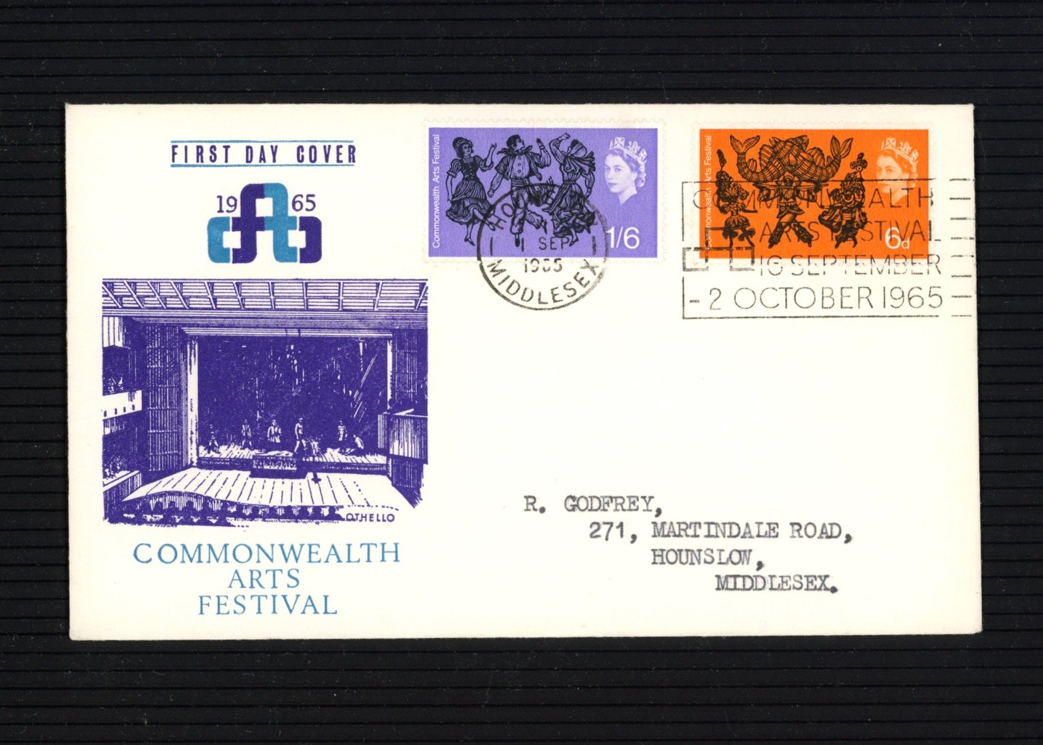 (Ord) Illustrated FDC with Hounslow slogan "Commonwealth Arts Festival". Cat £500. AT (see photo)
