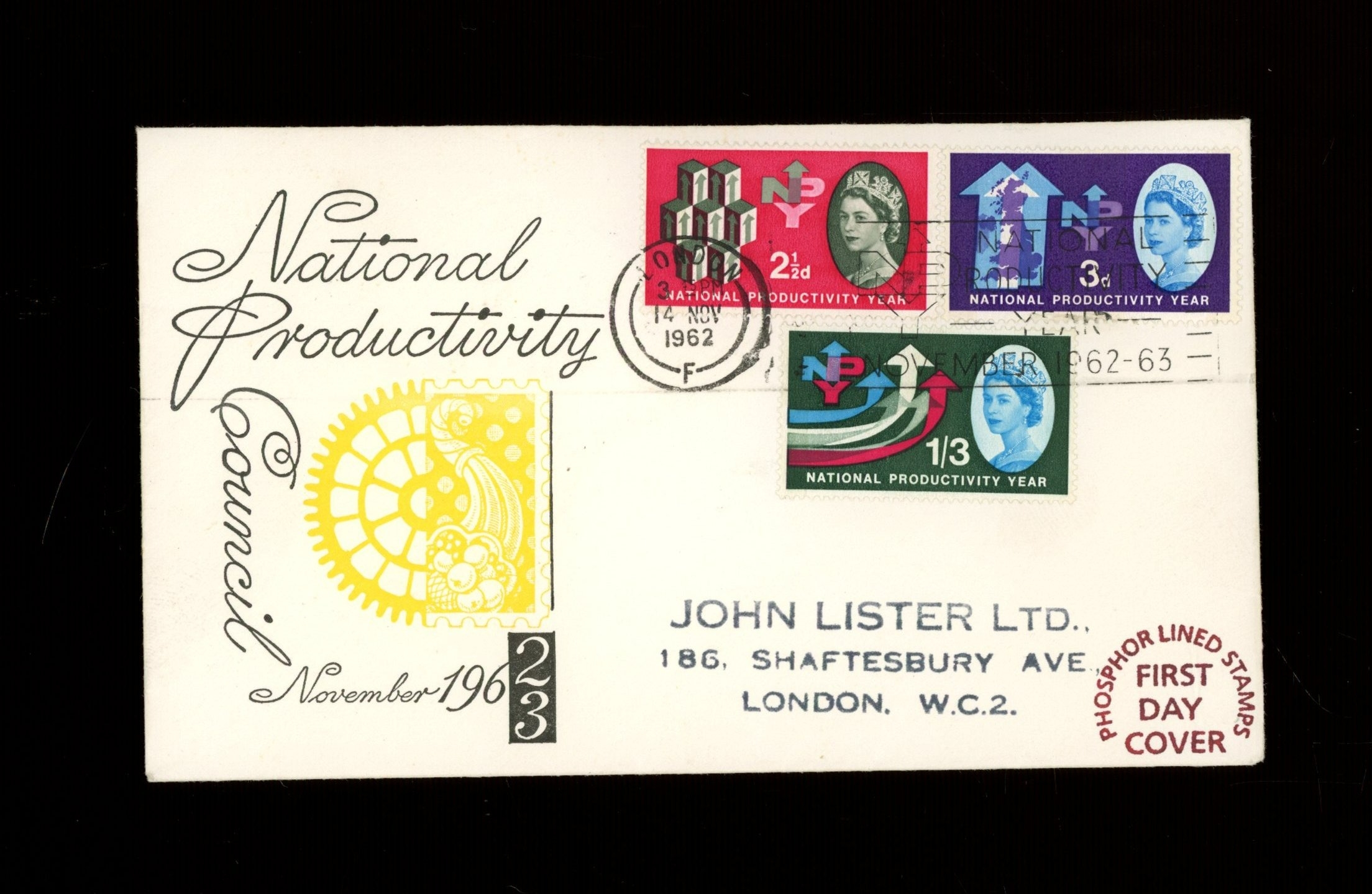 (Phosphor) Illustrated FDC with London slogan "National Productivity Year". Cat £130. AP