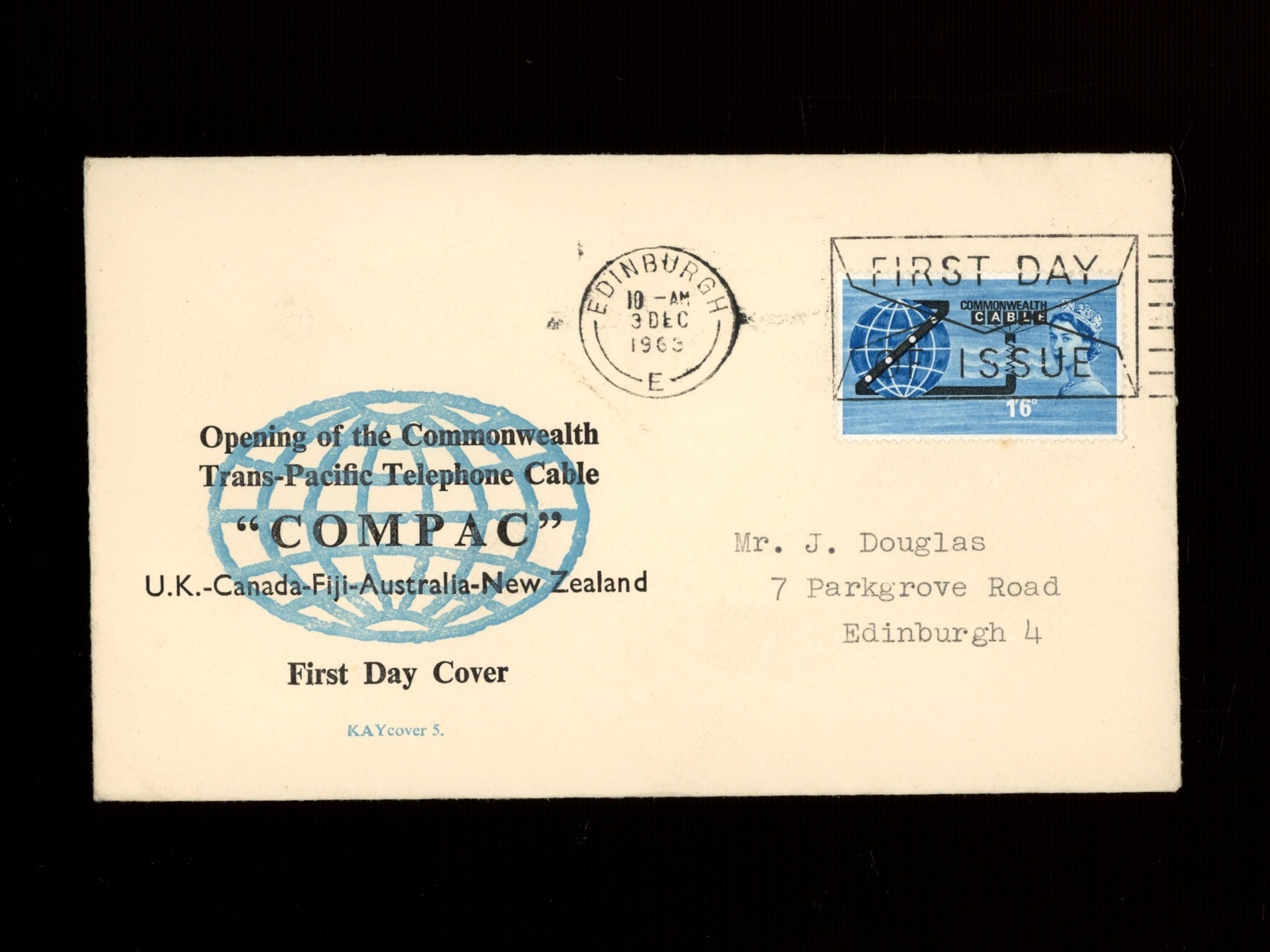 (Ord) KAYcover 5 scarce illustration FDC with Edinburgh First Day of Issue slogan. AT (see photo)