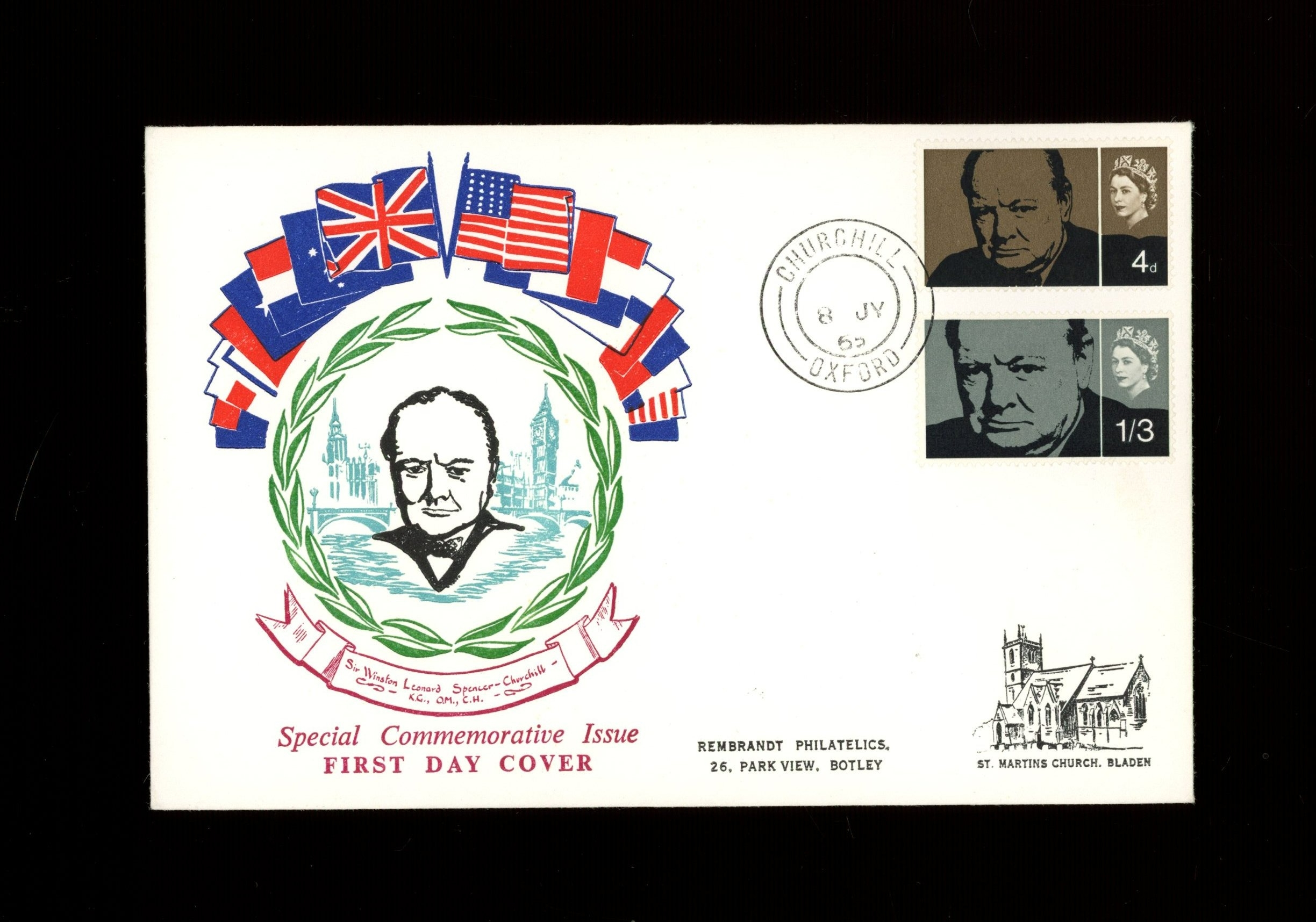 (Ord) Connoisseur FDC with Churchill Oxford CDS. Cat £95. UA